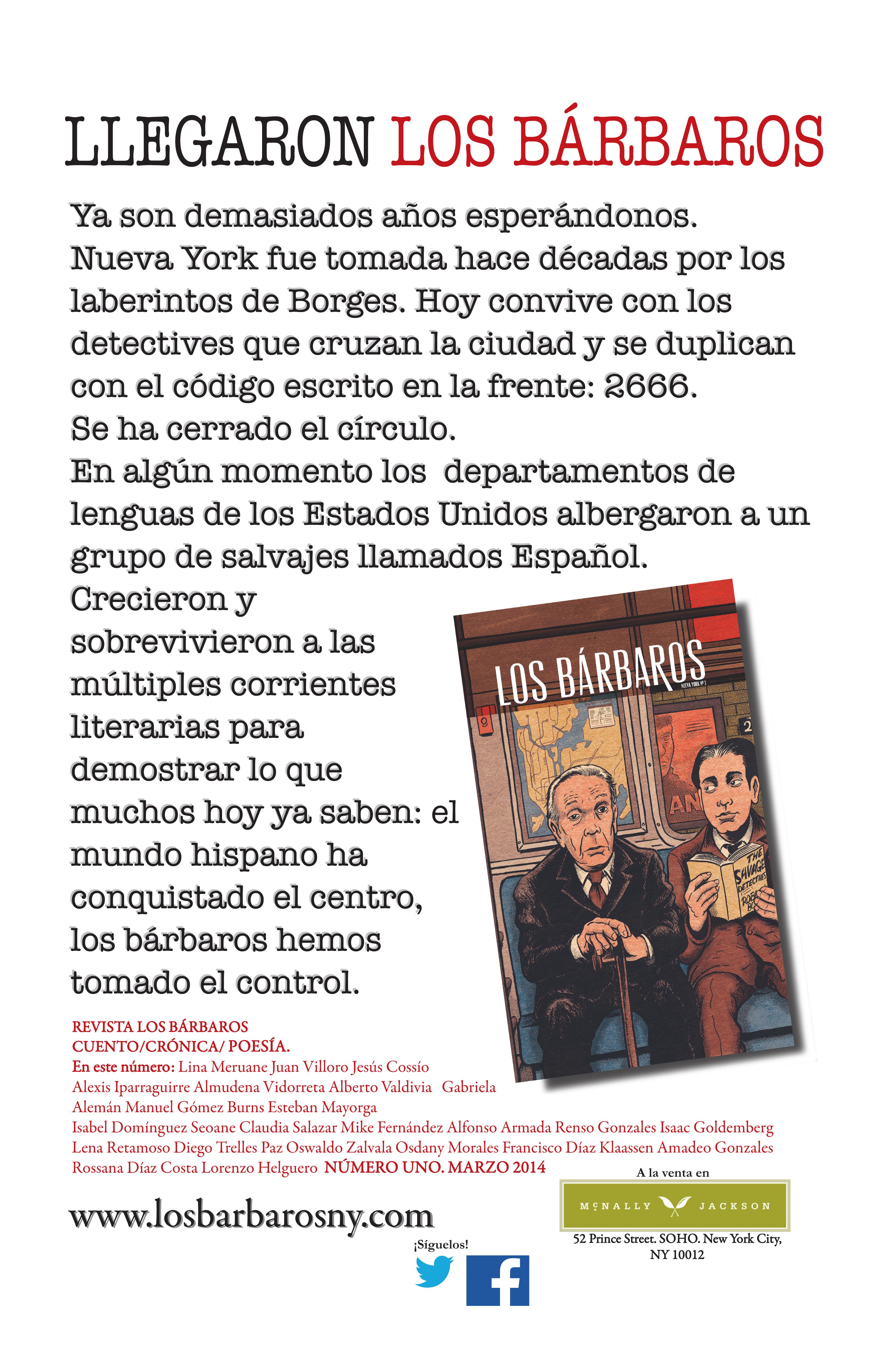 Writer. Editor of the literary journal Los Bárbaros (New York) and Las Furias (París). Editor at Chatos Inhumanos Publishing House (New York). Professor at the Journalism and Media Studies Department, Lehman College, CUNY, Bronx. Ver todas las entradas de ulisesgonzales