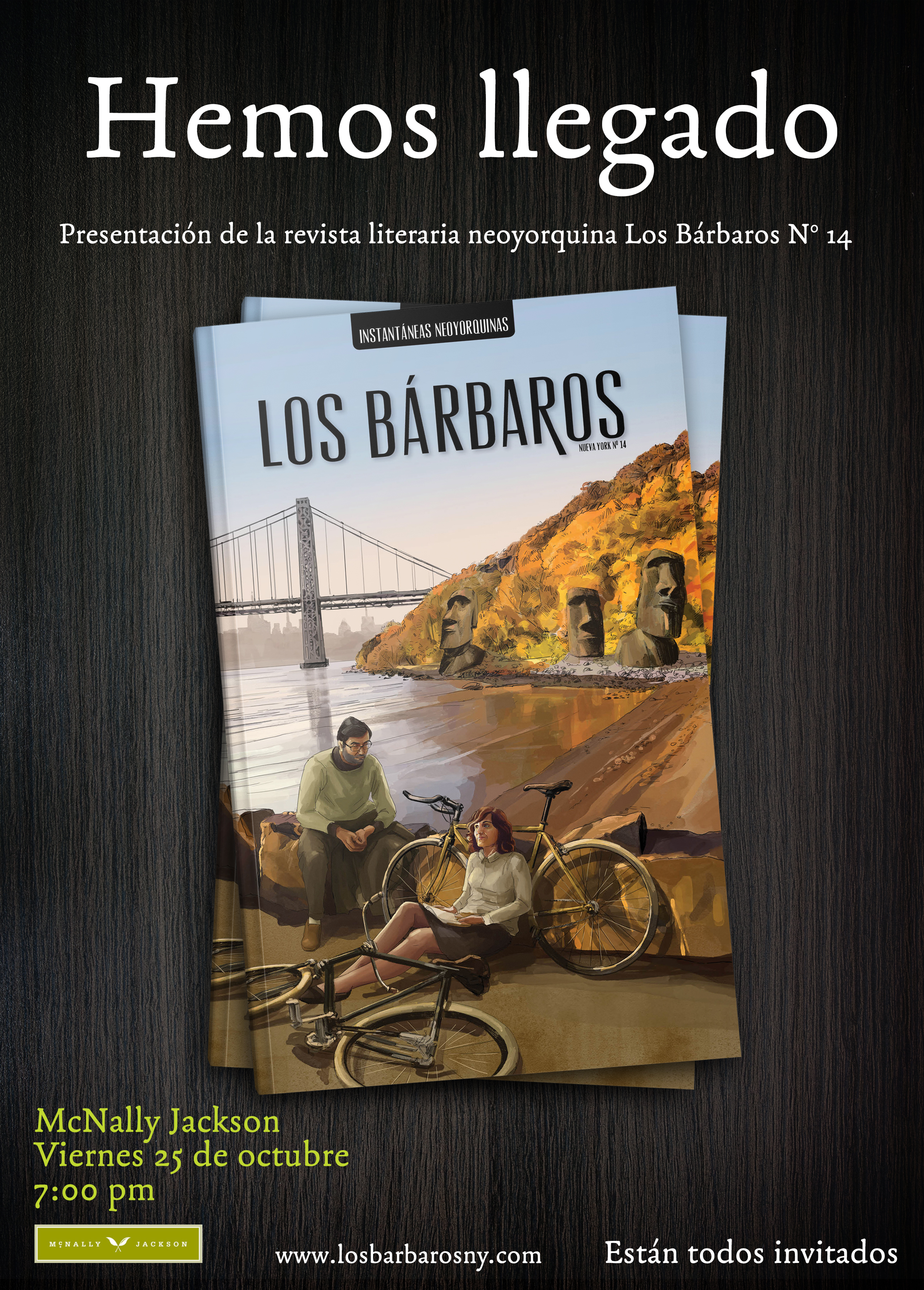El próximo viernes 25 de ocutubre, a las 7 p.m., algunos de los autores presentes en el número 14, Instantáneas neoyorquinas, leerán sus textos en la librería McNally Jackson del SoHo, en Manhattan. Están todos invitados.